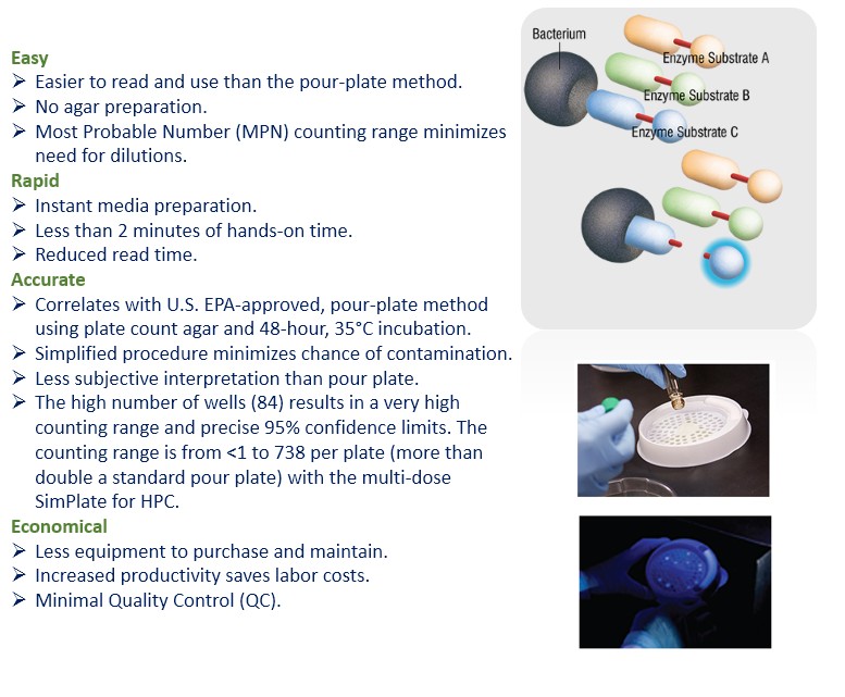 - The SimPlate for HPC test is U.S. EPA approved and included in Standard Methods for Examination of Water and Wastewater.